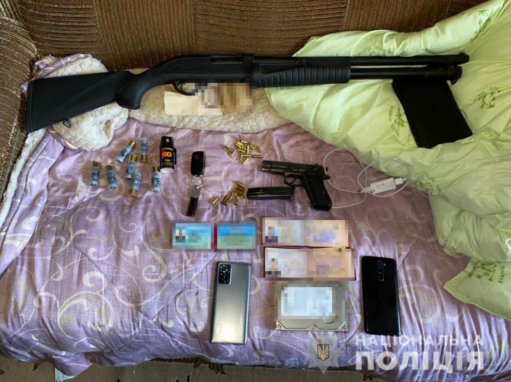 Поліція провела 10 обшуків у підозрюваних. Слідчим вдалося виявити патрони, перероблену мисливську та травматичну зброю, комп’ютерну техніку, наручники, мобільні телефони та газові балончики. Також в них конфіскували два автомобілі.